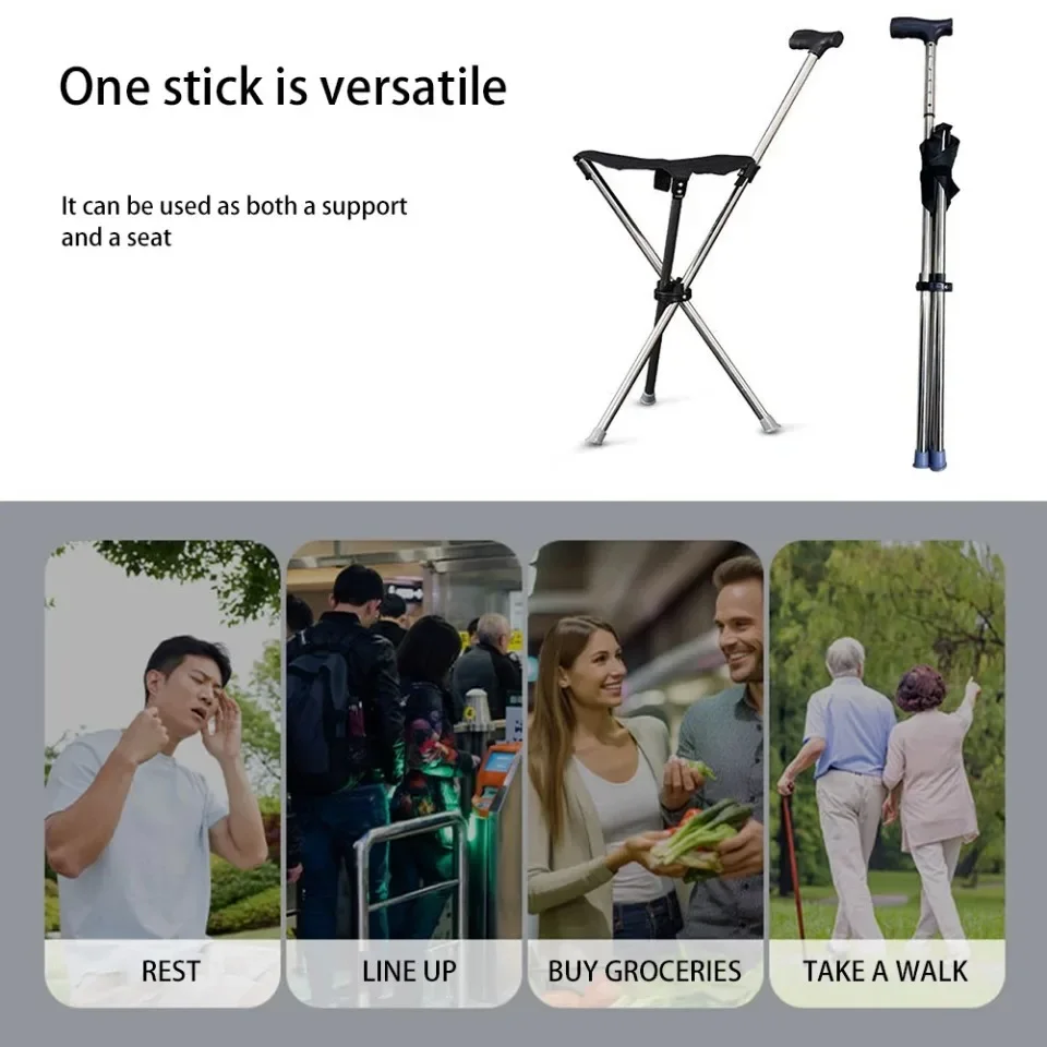Foldable Outdoor Chair Portable Elderly Walking Cane Travel Accessories Light Stools Mountaineering Cane Stick Crutches Stool