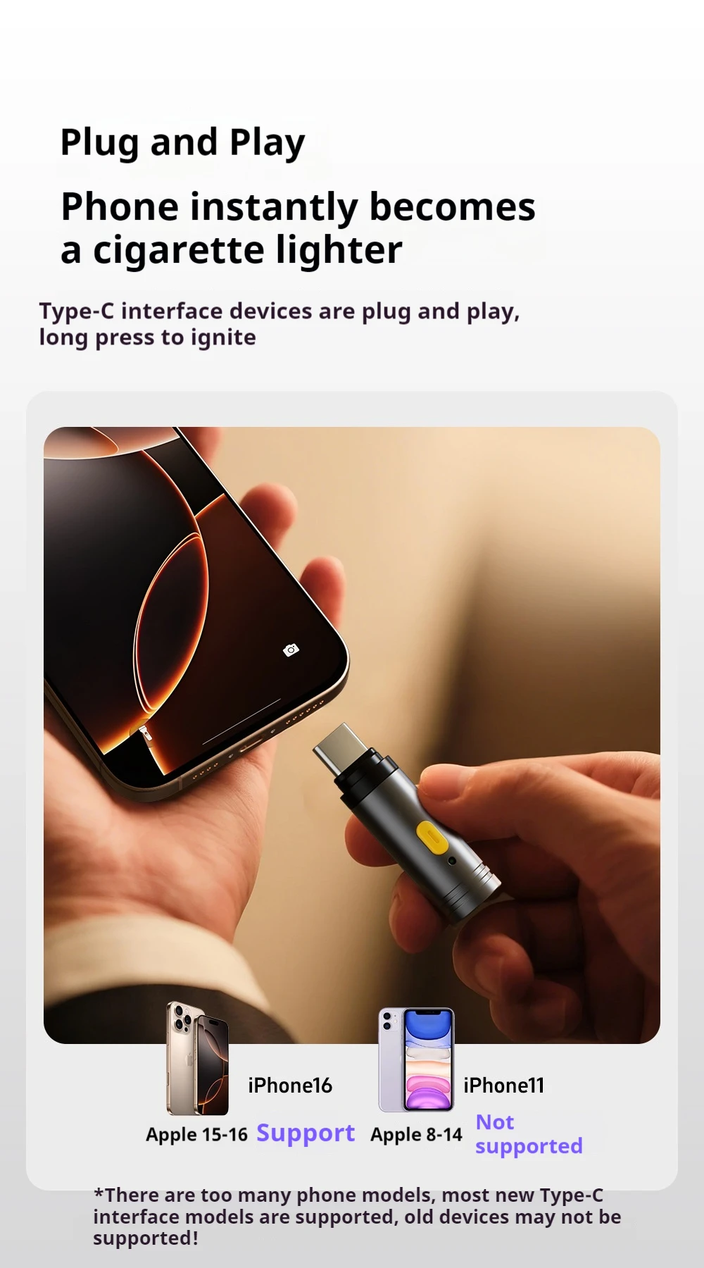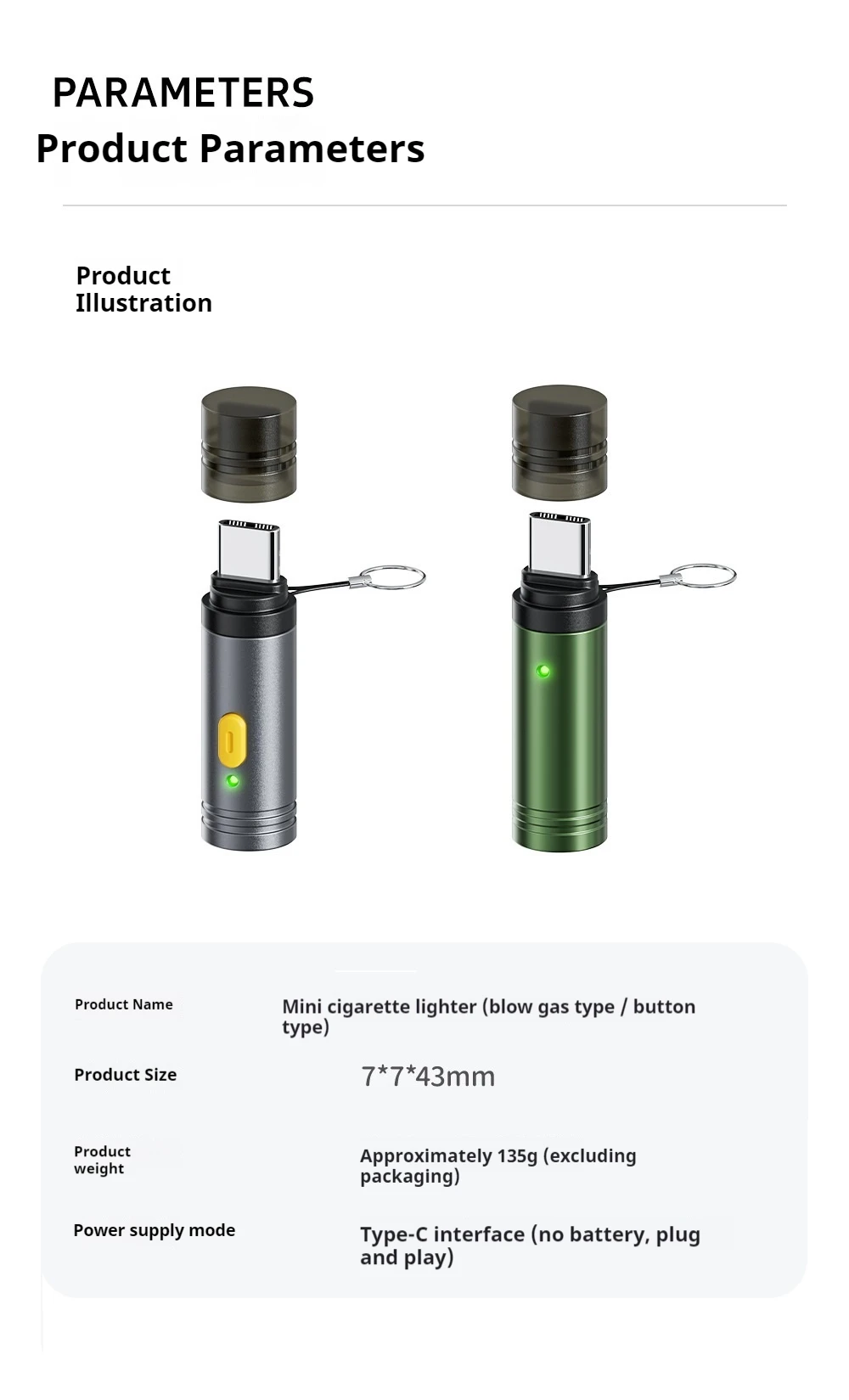 2. Type-C cigarette light-skinned does not need to be charged and plug and play