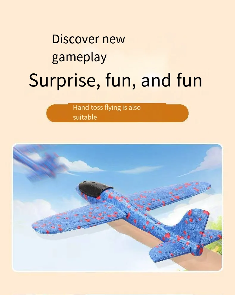 This toy is designed for children over 14 years old and is an outdoor foam plane launcher. It includes a launcher, a lightweight foam plane, and spare parts. The plane can fly 10-20 meters through elastic force. Made of safe and environmentally friendly materials, it is durable and can be played with repeatedly. It helps children improve their hand-eye coordination.