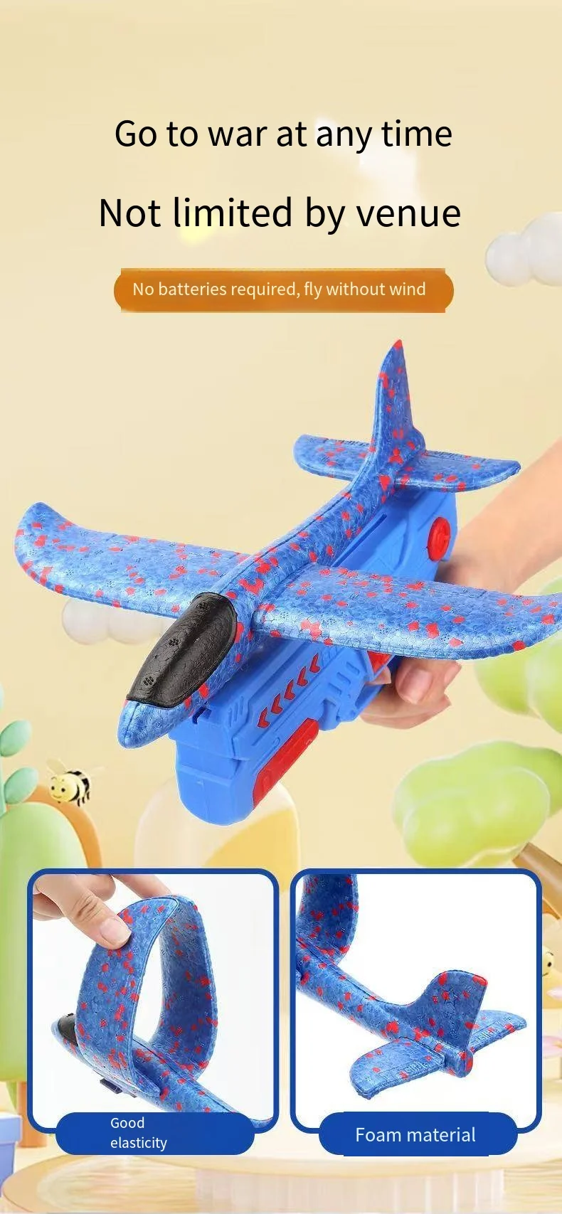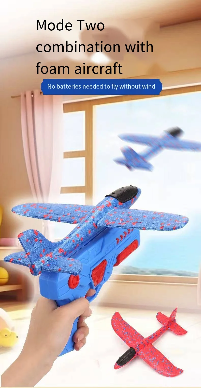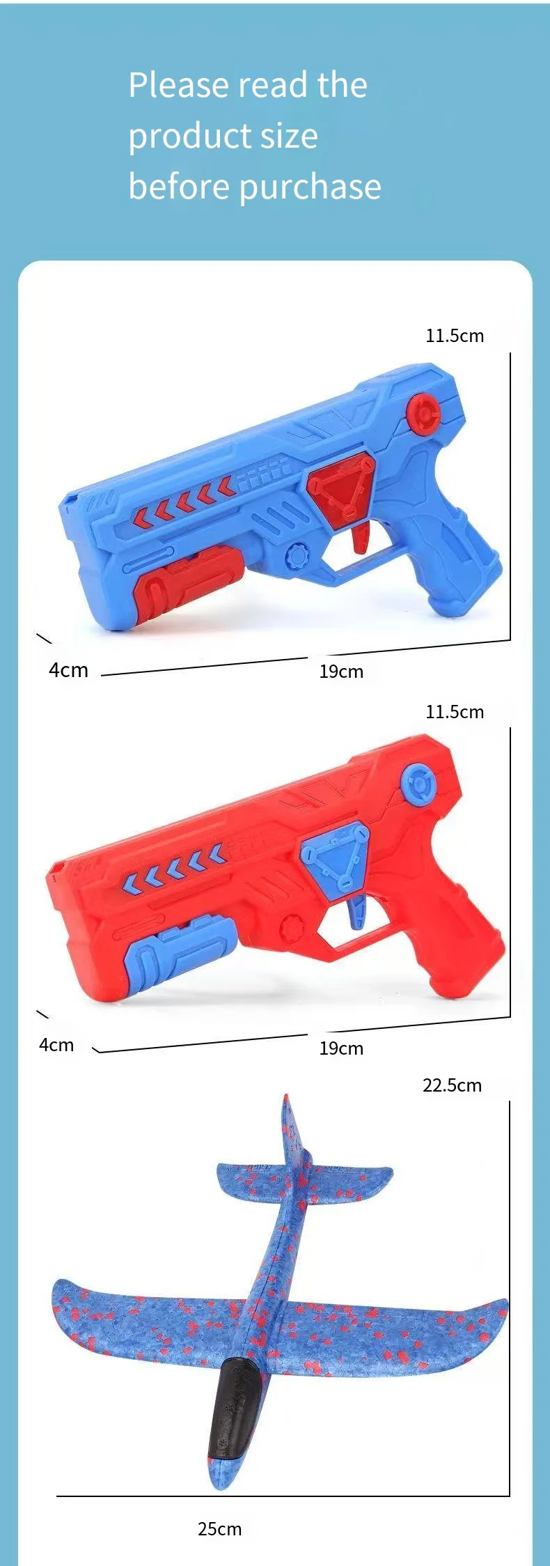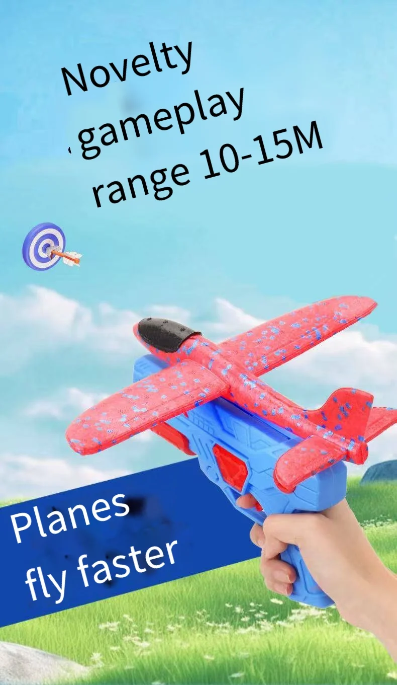 Title: Foam plane launcher gun for family and children's outdoor play and interaction. Essential toy for fun and entertainment.