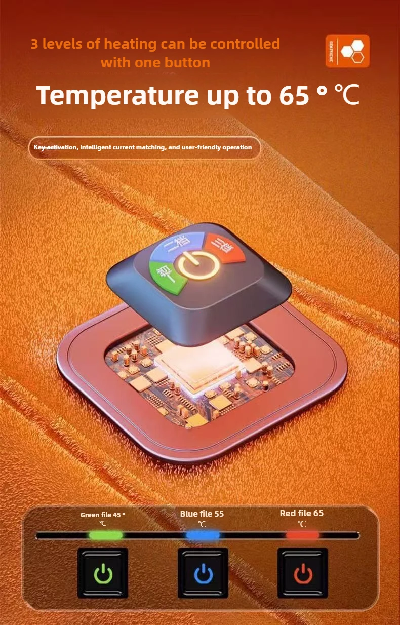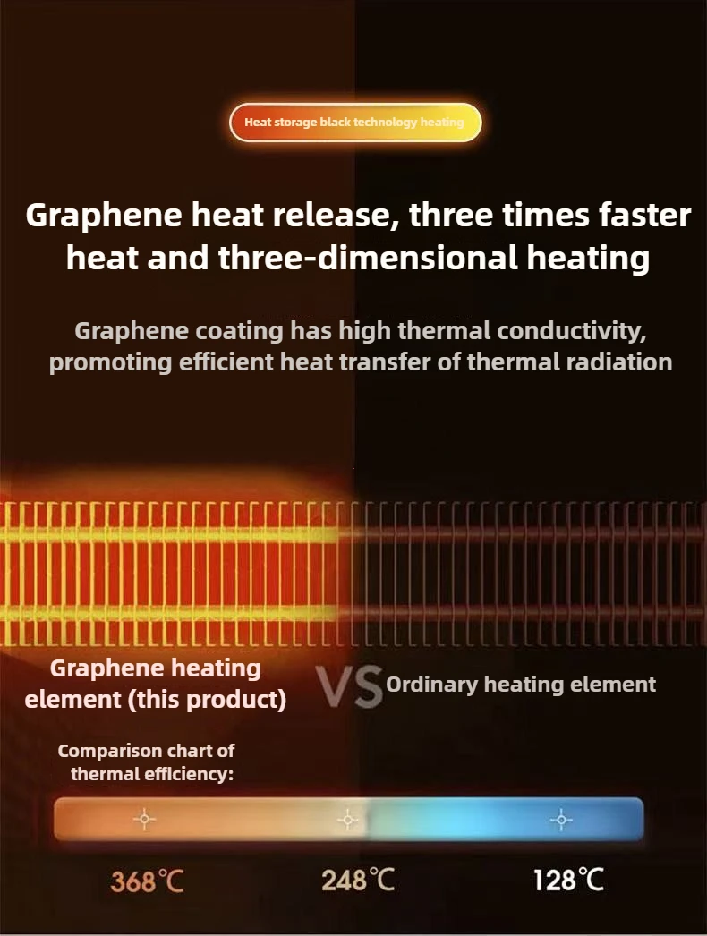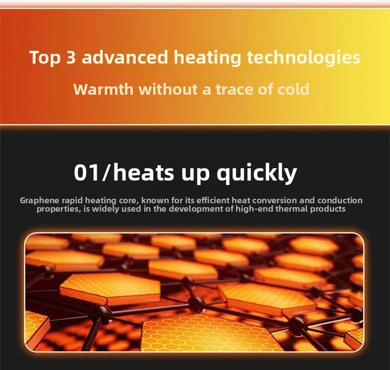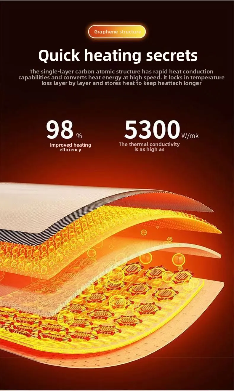 Using graphene thermal conductive material, this product heats up quickly and evenly, heating in 3 seconds. It also offers low energy consumption and excellent durability and heat dissipation.