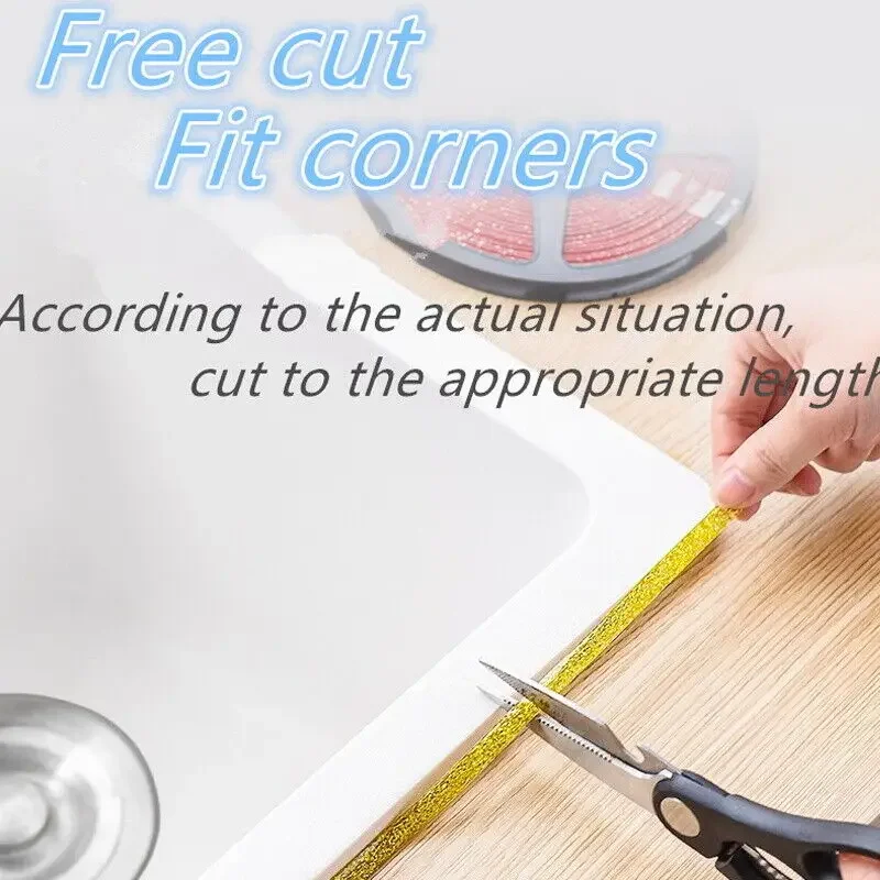 Applicable place: Our beautiful seam strips can be applied around the kitchen sink, kitchen countertop edge sealing, TV background wall, tile edging, the connection position of the toilet and floor tiles, around the shower tray, tile trims and edgings, the gap between the floor tiles, the contact position between the bathtub and the wall. Other places where there is no leakage or flooding-bath sealant strip.