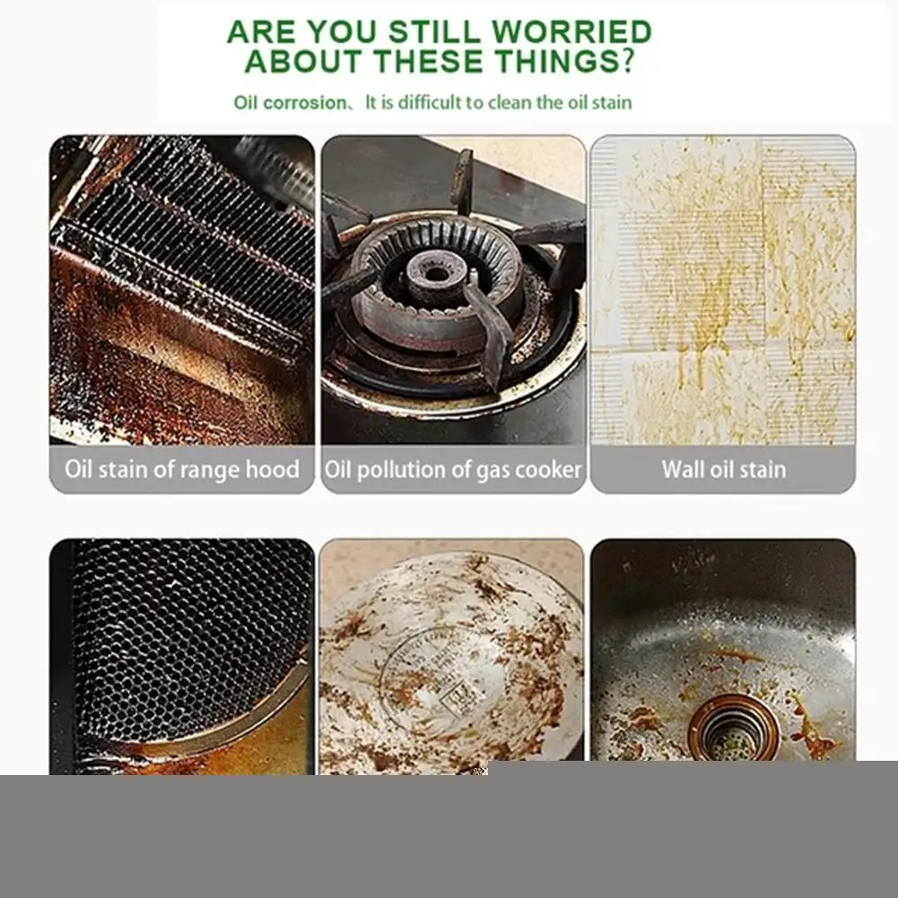 Scope of application: Suitable for heavy oil stains on multiple surfaces in the kitchen, such as range hoods, exhaust fans, gas stoves or stoves, kitchen glass, heavy oil stains on sinks.