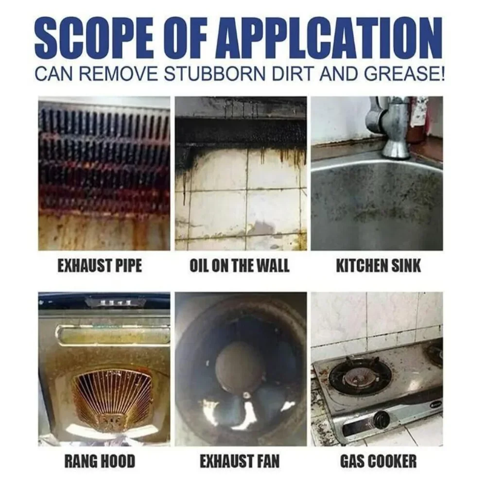 Note: In response to market demand, the product and packaging will be upgraded periodically, and the new and old packaging will be shipped randomly. Both of these bags are genuine (product quality will not change or upgrade), so please feel free to use them.Scope of application: It is suitable for heavy oil pollution on multiple surfaces in kitchen, such as range hood, exhaust fan,