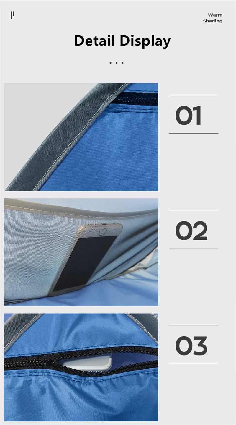 3. At the same time of perfect shading, there is a grid design for mobile phone on the top. You can play mobile phones, chase dramas and watch movies while sunbathing.