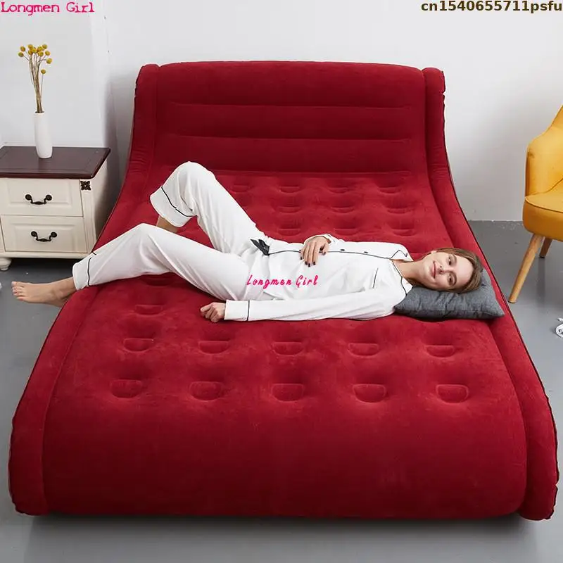 Modern Folding Sofa Bed With Velvet PVC Leather For Camping Traveling Inflatable Bedroom Double Bed Hotel Furniture