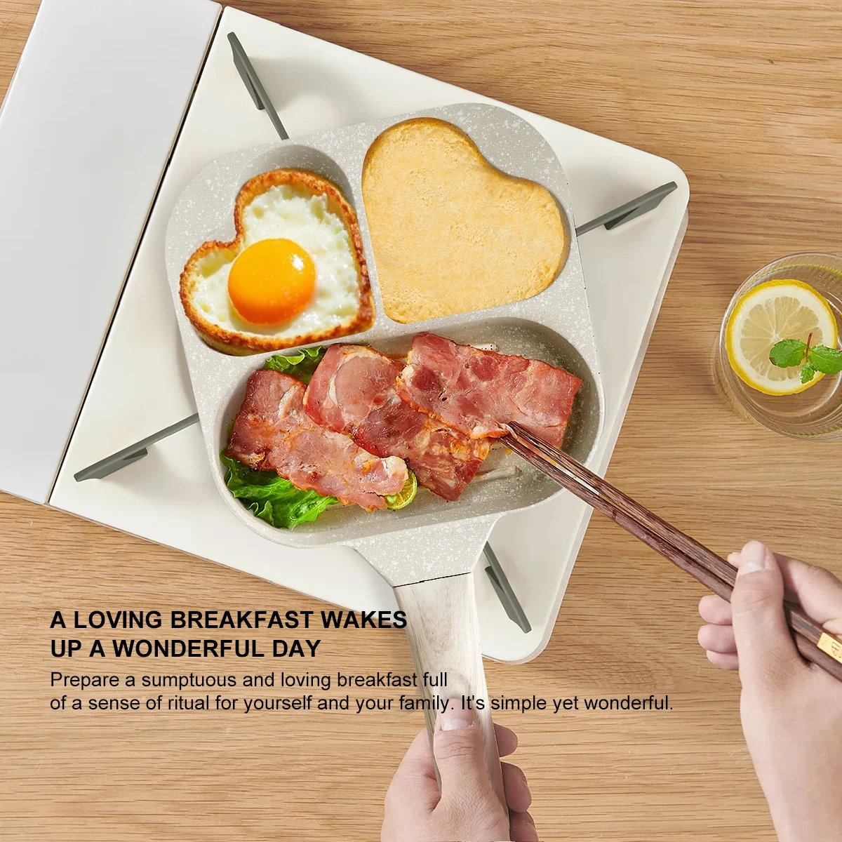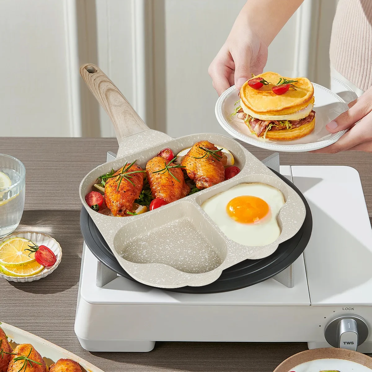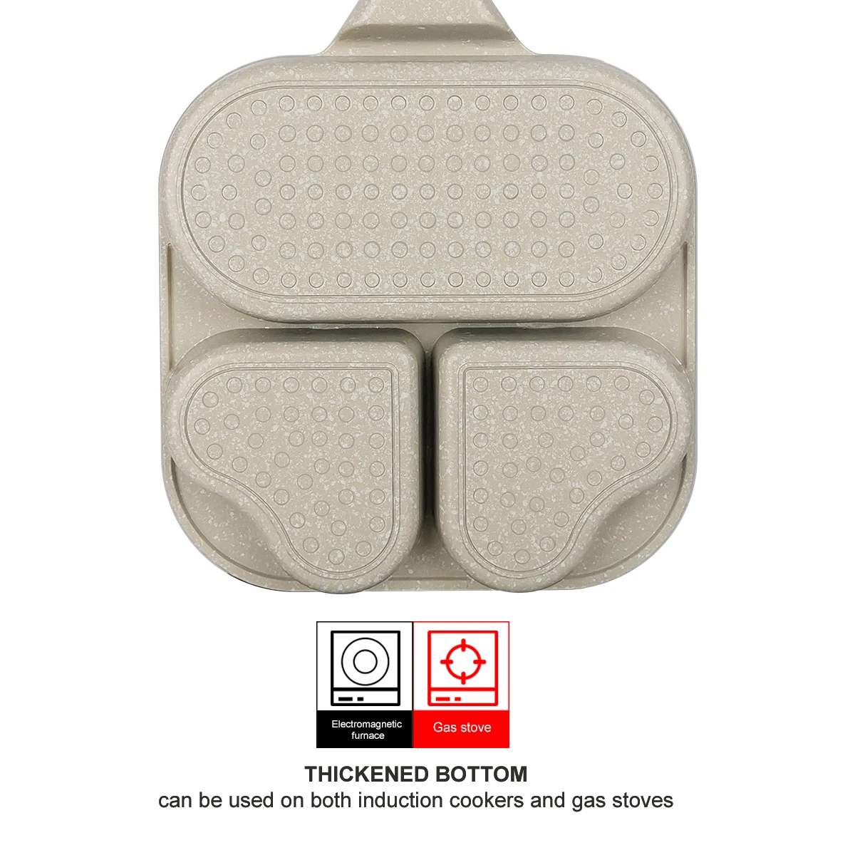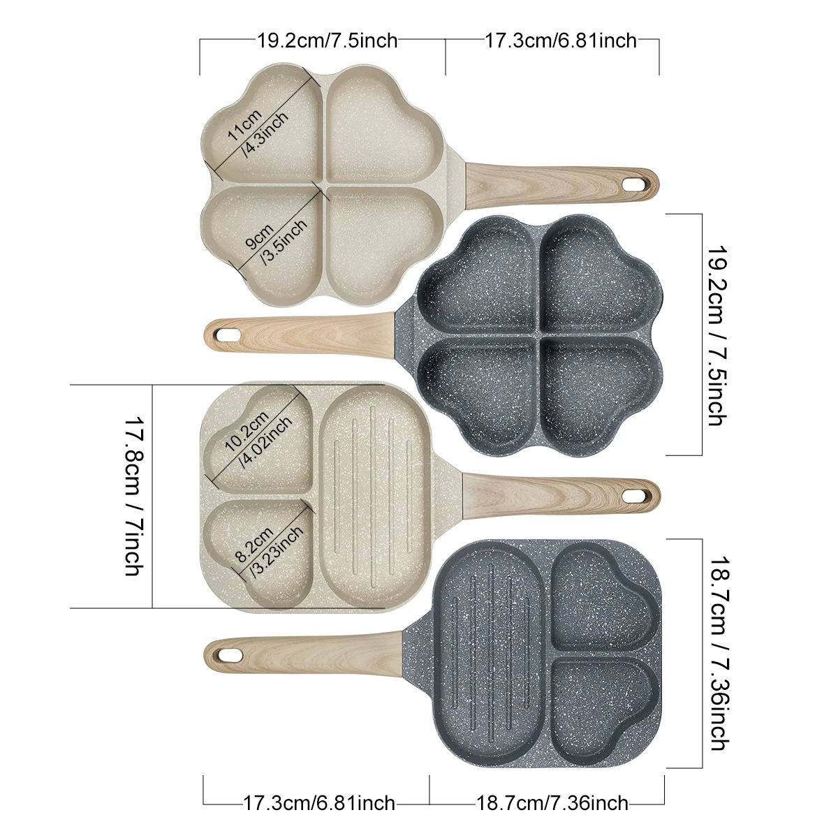 2. 3/4-Cup Design: The difference from ordinary omelette frying pan is that our egg frying pans are designed with 3/4 cups egg skillet area, which can fry Four Eggs, Pancakes, Egg Mcmuffin, Egg Sandwiches with some Cheese, Burgers, Bacon, Sausage or any other different recipe you favorite to serve for your daily breakfast.