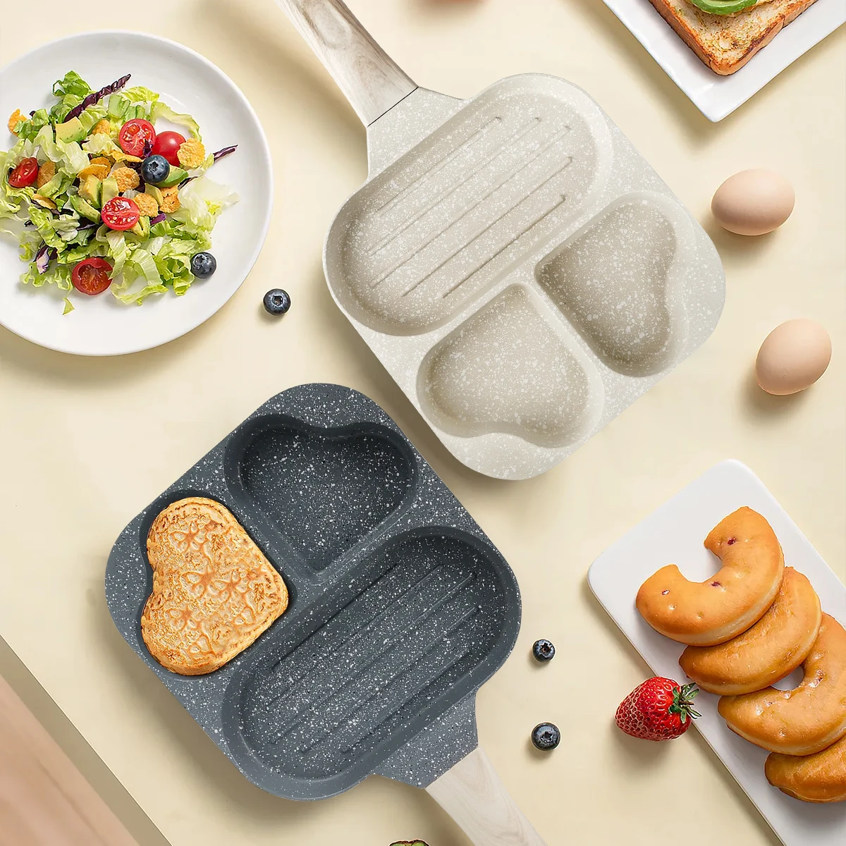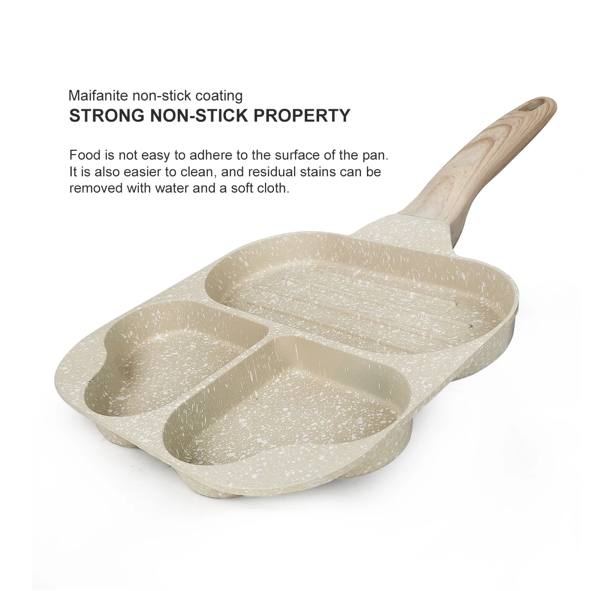 1. Eco-friendly Granite Non-Stick Material: Carote egg pancake pan with nonstick granite material. With 100% Free of PFOS, PFOA, our 4-Cup egg frying pan ensures your daily cooking is always safer and healthier.
