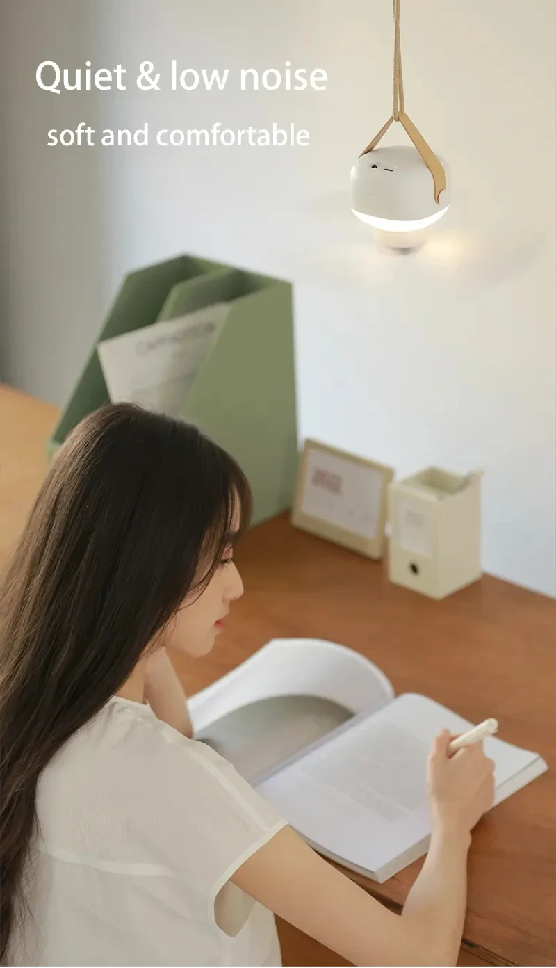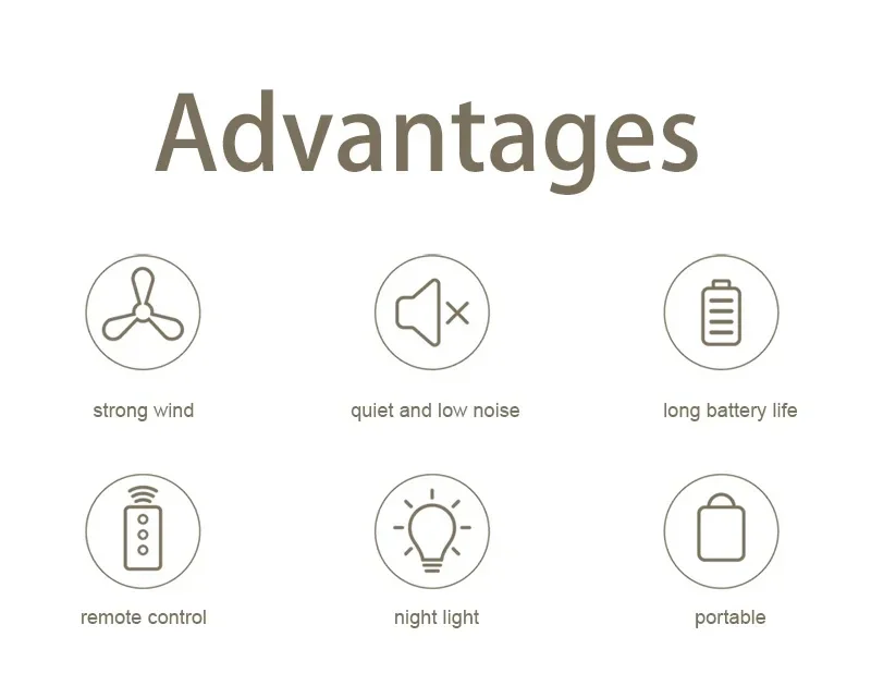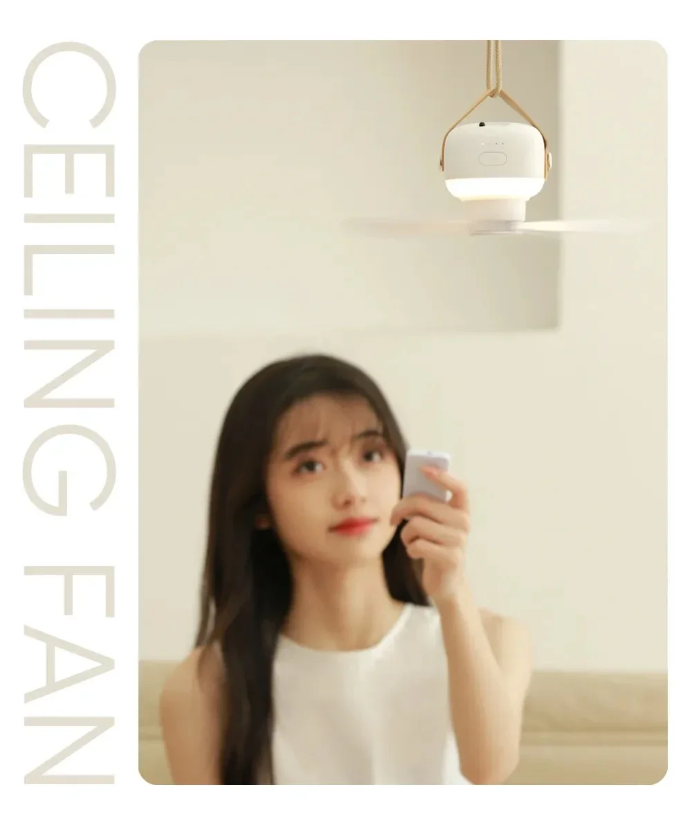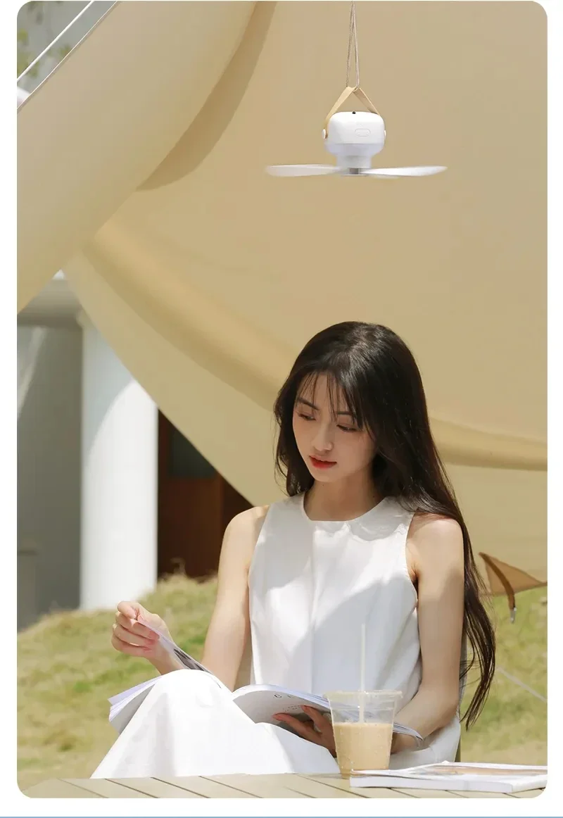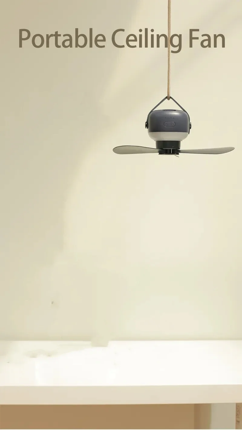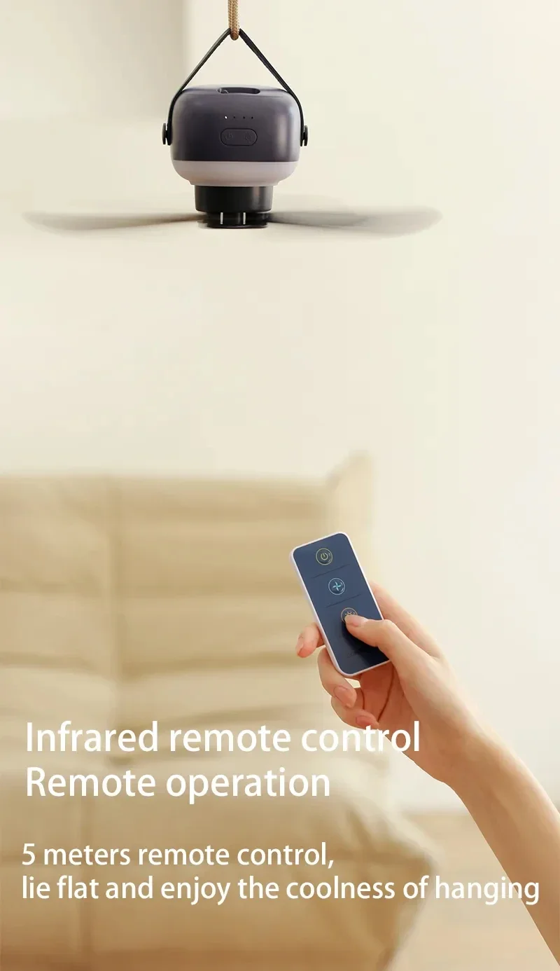 With a hanging hook,can be used as ceiling fan,it allows you to hang it on tents, tree branches or anywhere you want.