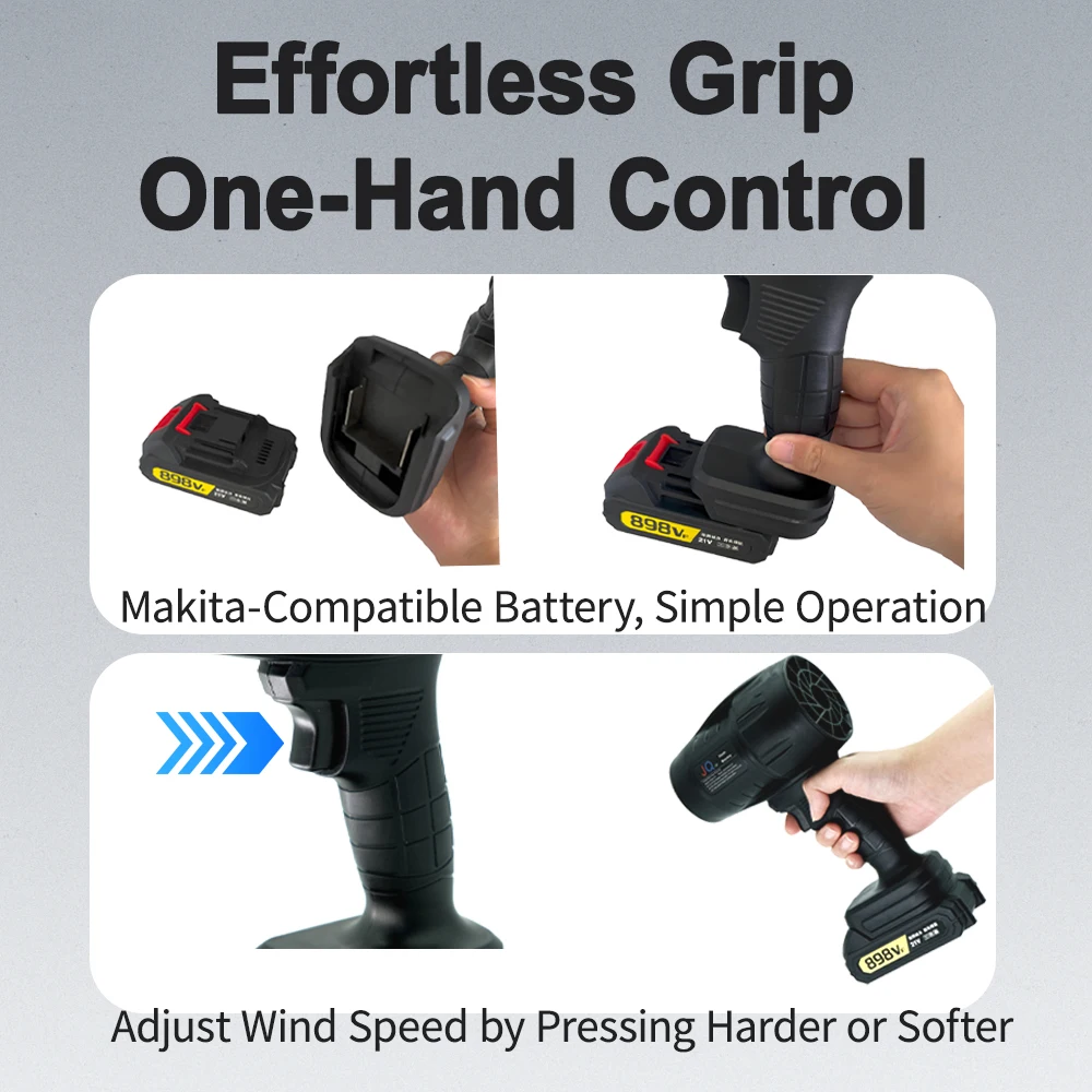 Designed with an ergonomic grip and simple, intuitive controls, this blower ensures a comfortable user experience while enhancing cleaning speed and efficiency.