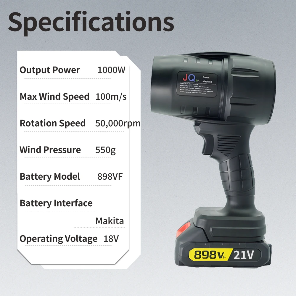 Equipped with a high-performance 1000W motor, this turbo blower delivers an impressive wind speed of 100m/s and up to 50,000 RPM. Its 550g thrust ensures fast, effective cleaning and drying for a wide range of applications.