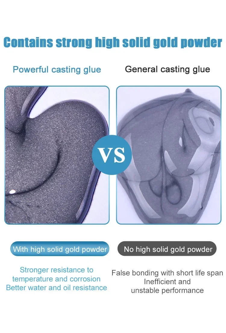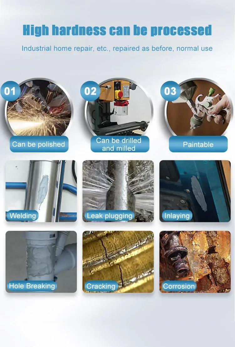 Used for Casting Metal Repair.It Is Made of Epoxy Resin, Curing Agent, Toughening Agent, Reactive Diluent and Various High-quality Materials. It Is Used for Fast Bonding of Metal, Glass, Ceramic, Plastic, Wood, Etc. Used for Bubbles, Pores Or Cracks Filled in Iron and Steel Castings, Casting Defects, High CuringHardness, Can Be Used at 100 - 150℃