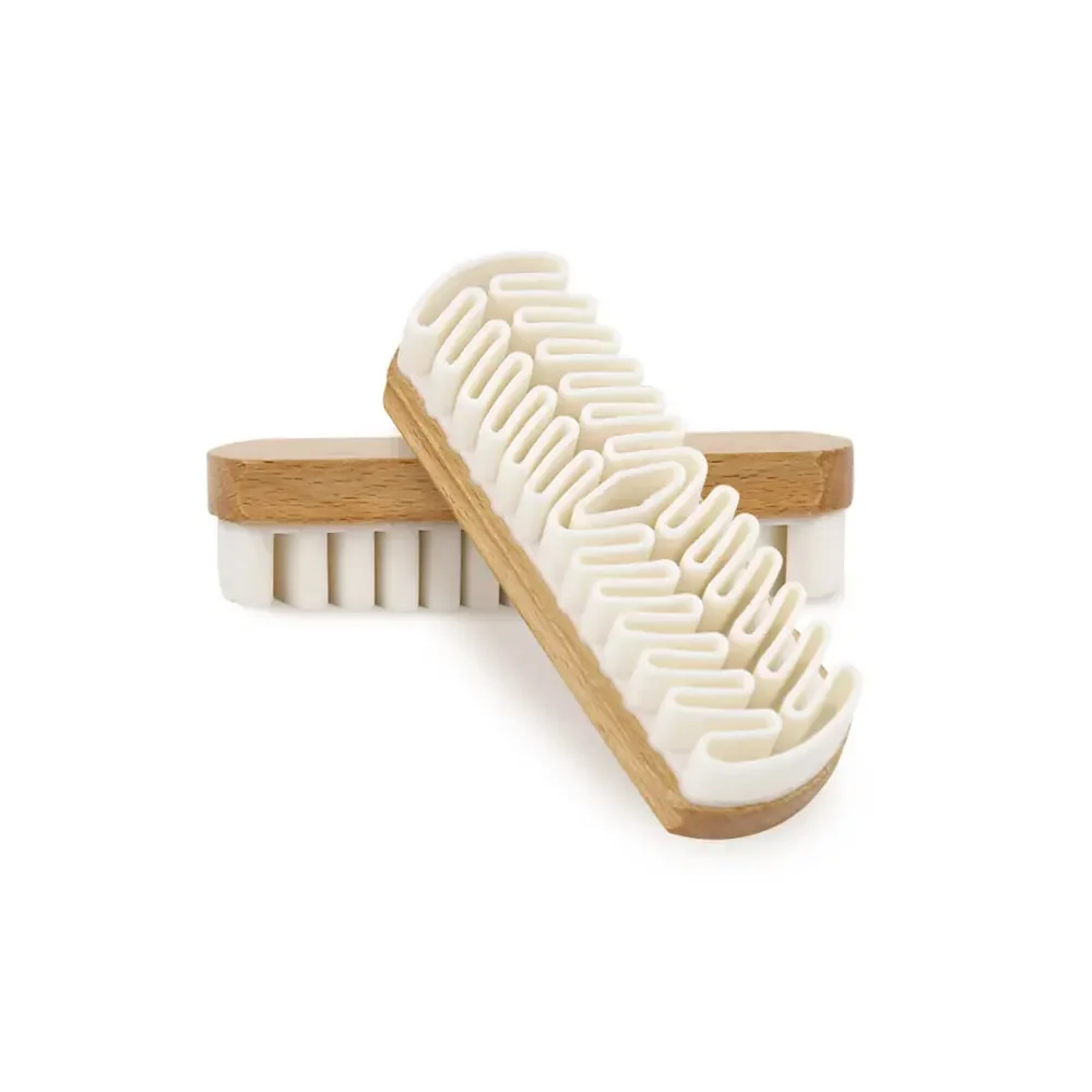 2.100% NATURAL CREPE -- Our Suede and Nubuck Brush is made with all natural crepe that helps restore the nap of your suede by pick up dirt buried deep within the suede, while lifting up the nap to its natural luster.