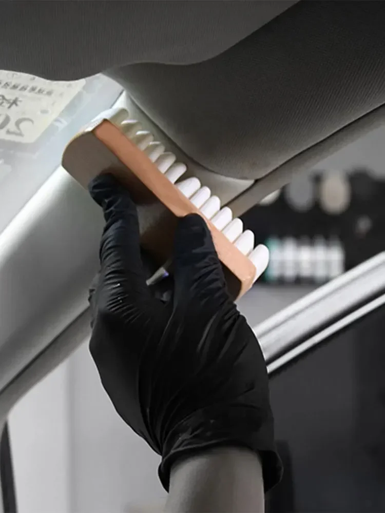 1.PREMIUM SUEDE AND NUBUCK BRUSH -- Effortlessly restore the nap of your suede and nubuck with the Car Interior Parts Cleaning Brush. 100% Natural Crepe on a beautiful Beech Wood handle.