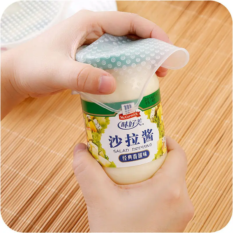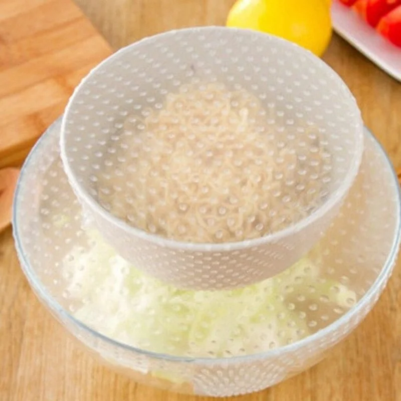 4pcs S/M/L Transparent silicone sealed refrigerator food fruit fresh-keeping cover film reusable kitchen microwave oven heating