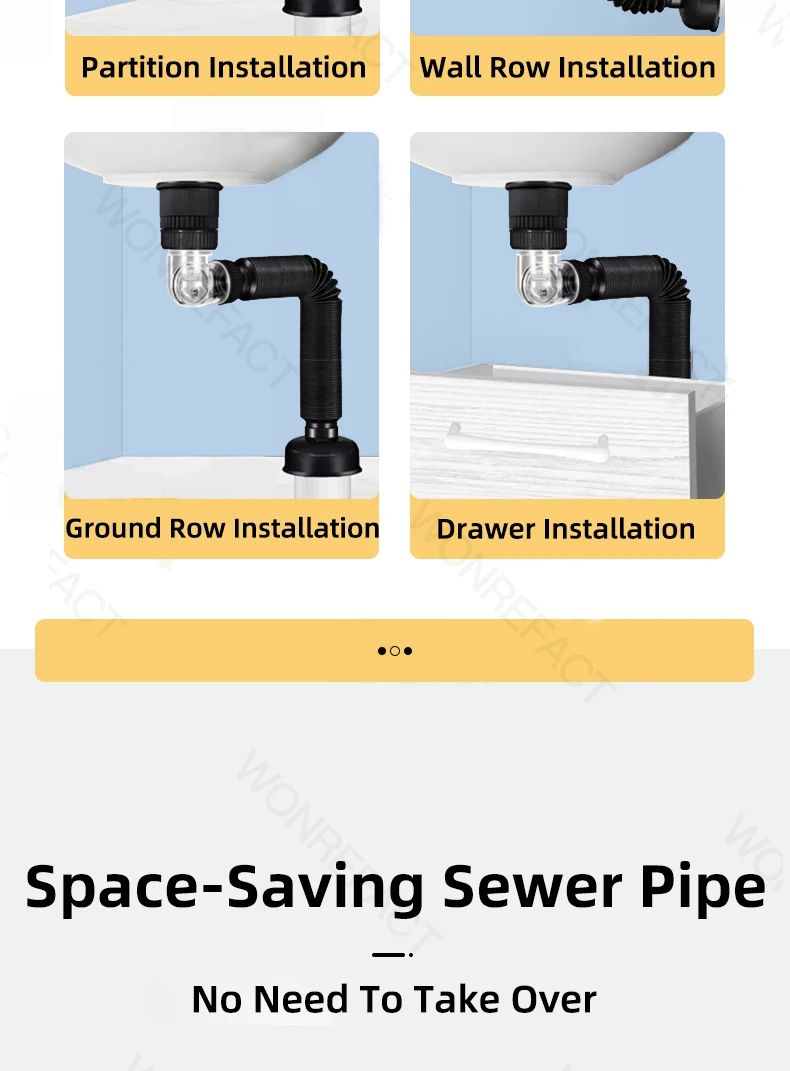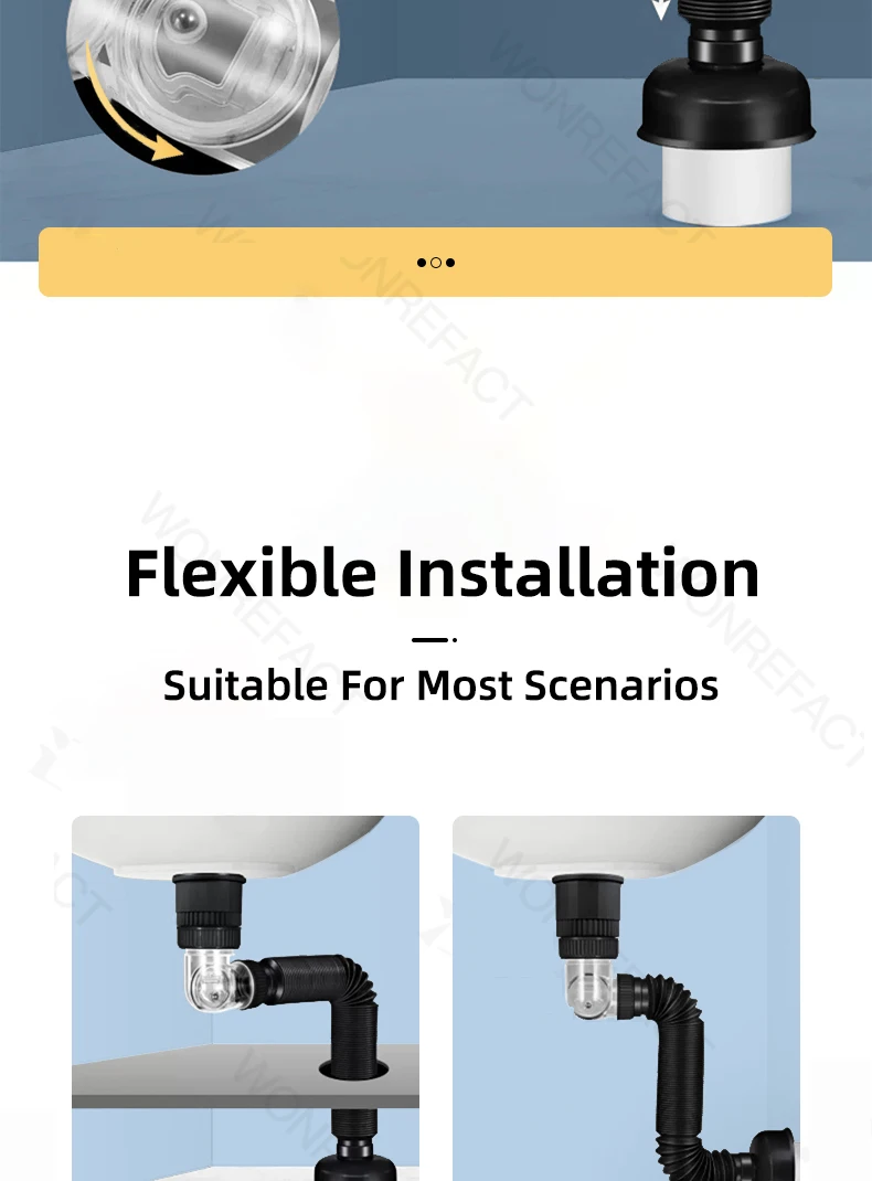 2. Arbitrary Bending: The Flexible Sink Drain Pipe can be bent at will to suit the actual installation situation, solving the problem of tight spaces where installation is impossible.
