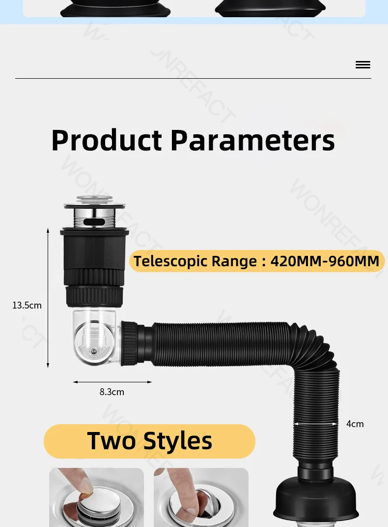 5. Easy Installation: The Drain Pipe can be easily completed according to the installation instructions, suitable for installation in hotels, apartments, homes and other environments.